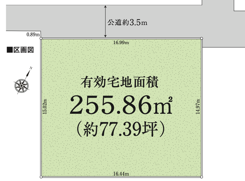 面積 | 敷地面積:255.86㎡(77.39坪) | |