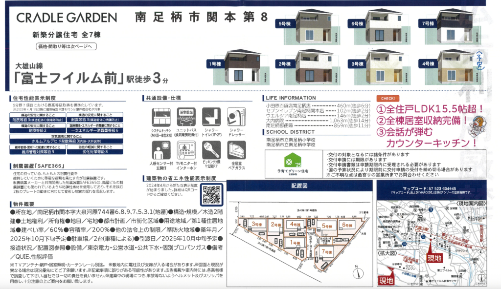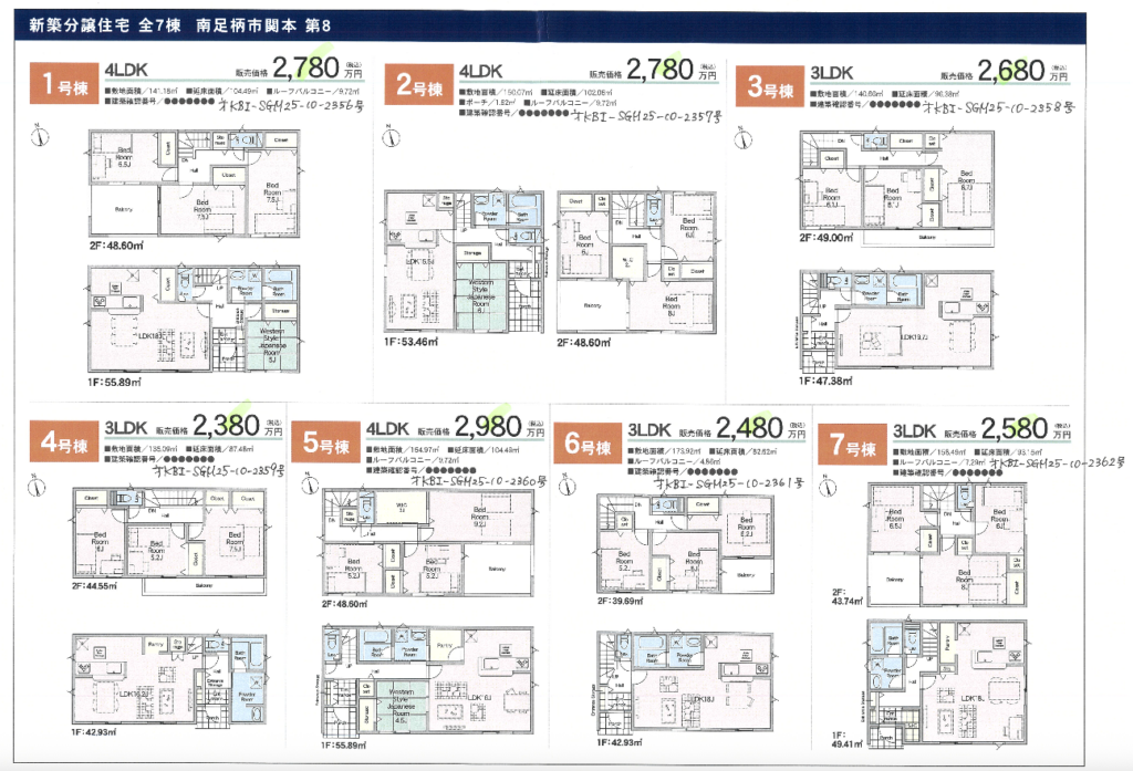 面積 | 1号棟:141.18㎡ 2号棟:150.07㎡ 3号棟:140.66㎡ 4号棟:135.09㎡ 5号棟:154.97㎡ 6号棟:173.92㎡ 7号棟:158.49㎡ | |
